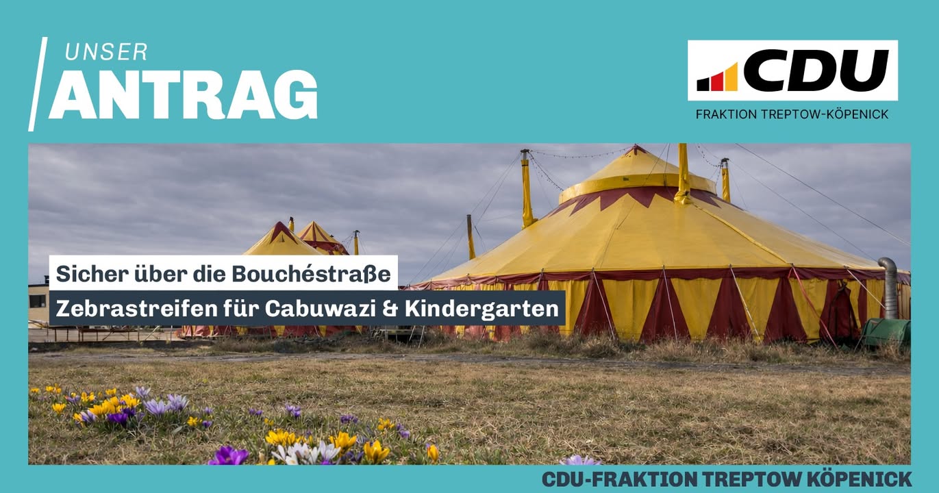 mehr🚸 Sicher über die BouchéstraßeIn der Bouchéstraße auf Höhe des Cabuwazi, des Kulturhauses und eines Kindergartens sind täglich viele Kinder, Jugendliche und Familien unterwegs.Die Straße zu überqueren ist dort jedoch bisher **nicht eindeutig geregelt**.Deshalb haben wir als CDU-Fraktion einen Antrag in die BVV eingebracht:👉 Das Bezirksamt soll prüfen, ob an der bestehenden Gehwegvorstreckung ein **Zebrastreifen eingerichtet werden kann**.Ein Fußgängerüberweg sorgt für klare Regeln im Straßenverkehr ? besonders dort, wo viele Kinder unterwegs sind. Gleichzeitig wirkt ein Zebrastreifen oft auch **geschwindigkeitsdämpfend** für den Verkehr. Unser Ziel ist einfach:Mehr Sicherheit für Kinder, Familien und alle, die die Straße an dieser Stelle überqueren.#TreptowKöpenick #Bouchéstraße #Verkehrssicherheit #Zebrastreifen #CDUFraktionTK